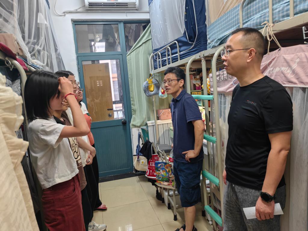 院长张世胜、党委书记郭富庭、党委副书记纪彩玲及20级辅导员于悦洋深入留校学生宿舍,走访慰问暑期留校学生。