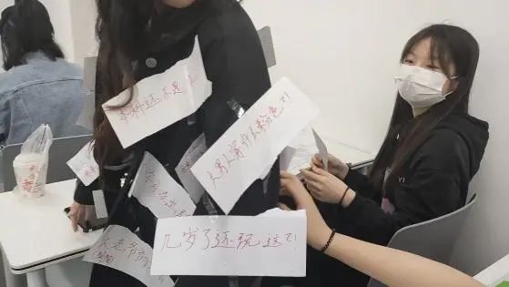 面对诸多焦虑问题,班级同学进行了“找出TA的优点”这一简单的互动与游戏,在其中同学们学会了自我肯定,将目光转向自己,活在当下,摒弃讨好型人格,丰盈自我内心,拥有被讨厌的勇气。