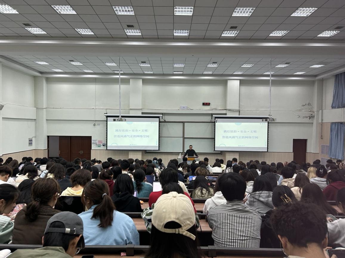 郭富庭以鲜明的案例,讲解了《网络信息内容生态治理规定》《中华人民共和国网络安全法》《互联网用户公众账号信息管理规定》等相关法律文件,围绕网络法治、网络安全和网络文明三方面,重点强调了互联网不是法外之地,教育引导同学们要依法依规知网用网,树牢网络安全意识和保密意识,要守住个人网络言行底线,拒绝网络不文明行为,积极举报违法违规现象,防范和抵制网络暴力,警惕网络谣言和煽动性信息等。