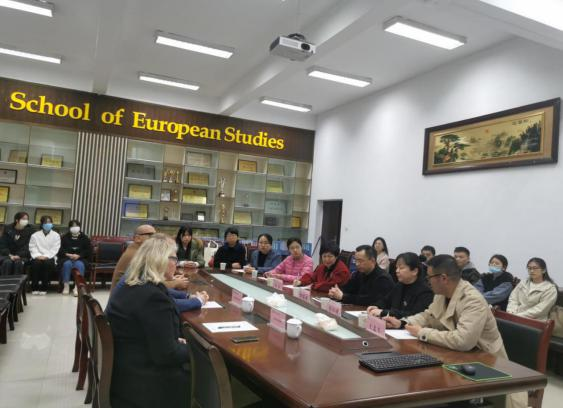 党委副书记(主持工作)郭富庭、副院长张红婕、意大利语系主任王孟冬、外教Laura Iseppi、意大利语专业教师及学生代表等出席了座谈会。