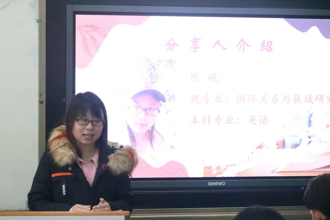 2022届毕业生考研备考经验分享会”。本次活动邀请来自国际关系与区域研究的陈砚、刘添同学、来自德国语言文学专业的李依兰同学、来自法国语言文学专业的徐佳欣同学,以及澳门娱乐