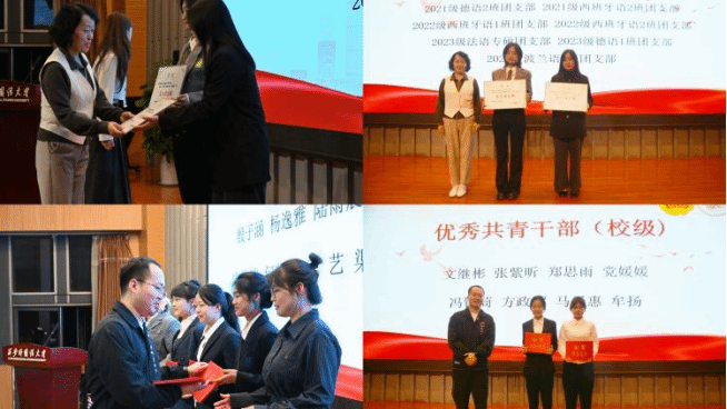 随后,会议进入表彰与聘书颁发环节。纪彩玲、李昶昭及学生会主席团成员为各部门团学骨干颁发聘书,同时对本年度五四表彰先进集体和个人进行表彰。