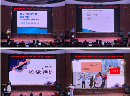 会议第二项,由法语系、西班牙语系和葡萄牙语系教师宋敏生、侯玉、史林、陈琛代表此前赴苏州、深圳、上海开展访企拓岗的调研小组进行心得分享。几位教师代表具体分析了此次走访的用人单位和企业行业的新特点、新要求,并就校企联合课程开发、建立实习实践基地、修订人才培养方案以及开展贯穿大学阶段全过程的职业生涯规划教育等方面提供了拓展性思维和建设性意见。