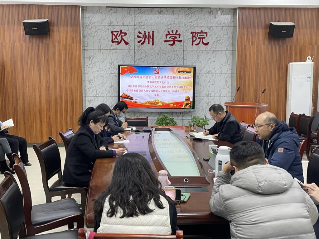 党委理论学习中心组在G110会议室召开第15次理论学习中心组(扩大)学习会议,专题学习习近平总书记关于文化自信的论述和师德师风相关内容。学院党委书记郭富庭主持,全体中心组成员线下参加,全院教职工线上参加会议。