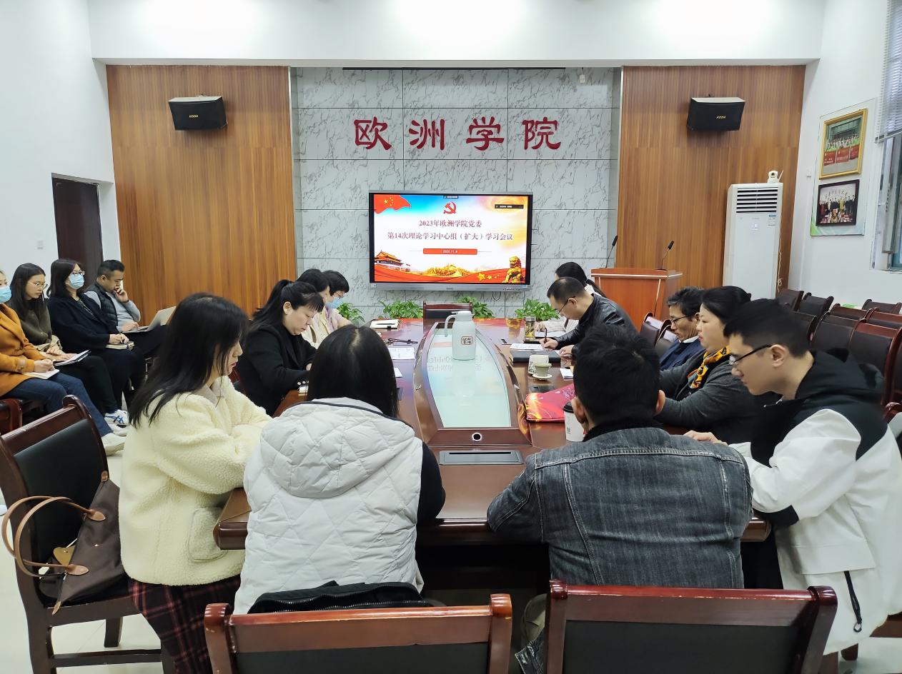 党委理论学习中心组在G110会议室召开本年度第十四次集体学习(扩大)会议,专题学习“四下基层”、党的群众路线、规范党徽党旗使用等内容,学院党委书记郭富庭主持,全体中心组成员参加会议。