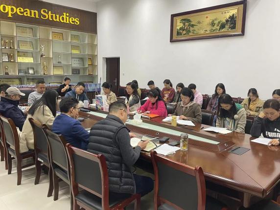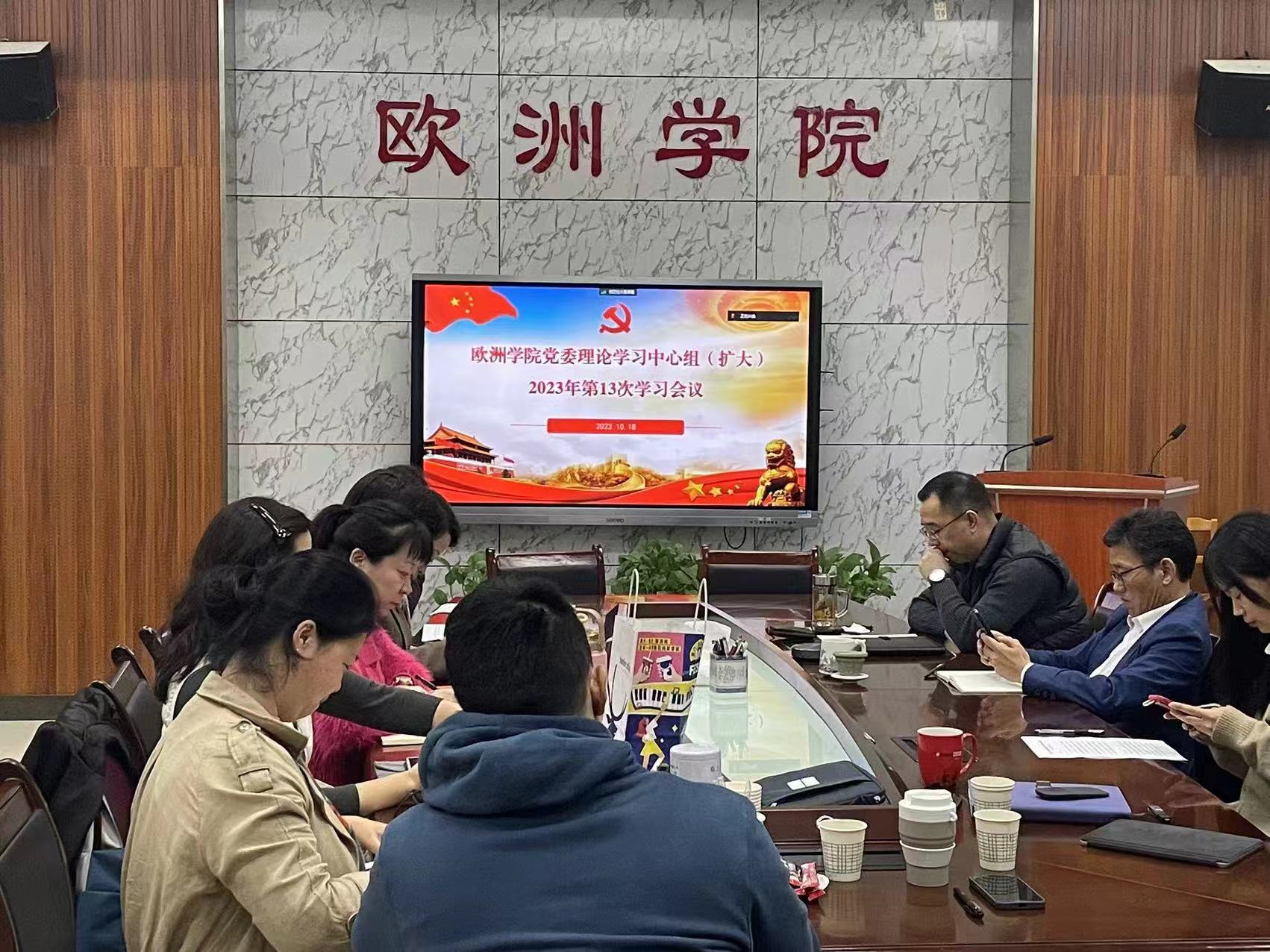 党委理论学习中心组在G110会议室召开本年度第十三次集体学习(扩大)会议,学院党委书记郭富庭主持,全体中心组成员线下参加,全院教职工线上参加。