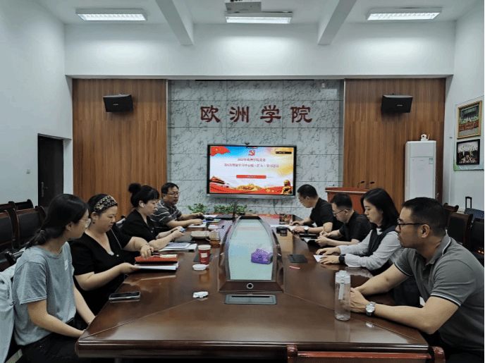 在第一议题环节,德语系主任赵凯领学了习近平总书记关于铸牢中华民族共同体意识的重要讲话精神,法语系主任陈晨领学了《求是》发表习近平总书记重要文章《激励新时代青年在中国式现代化建设中挺膺担当》。二人分别就所学内容进行了心得分享交流。