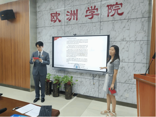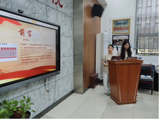 研究生第一党支部副书记赵一洋和研究生第二党支部书记章爱嘉以双语党课的方式,用法语和中文讲授了中央八项规定相关知识,并呼吁广大师生党员坚持以上率下、示范带动,深入推进风腐同查同治,久久为功,建章立制。