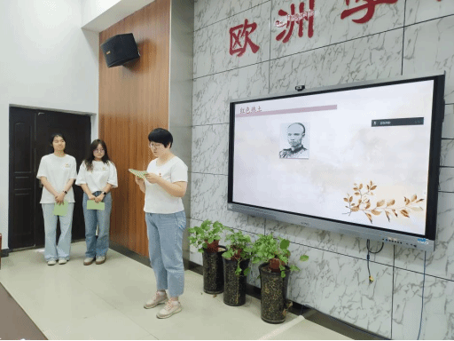 教工第一支部书记张露微以张玉滚的先进事迹为中心,结合实际法语教育教学的课堂体验,分享了西外人关于教育的接力担当。
