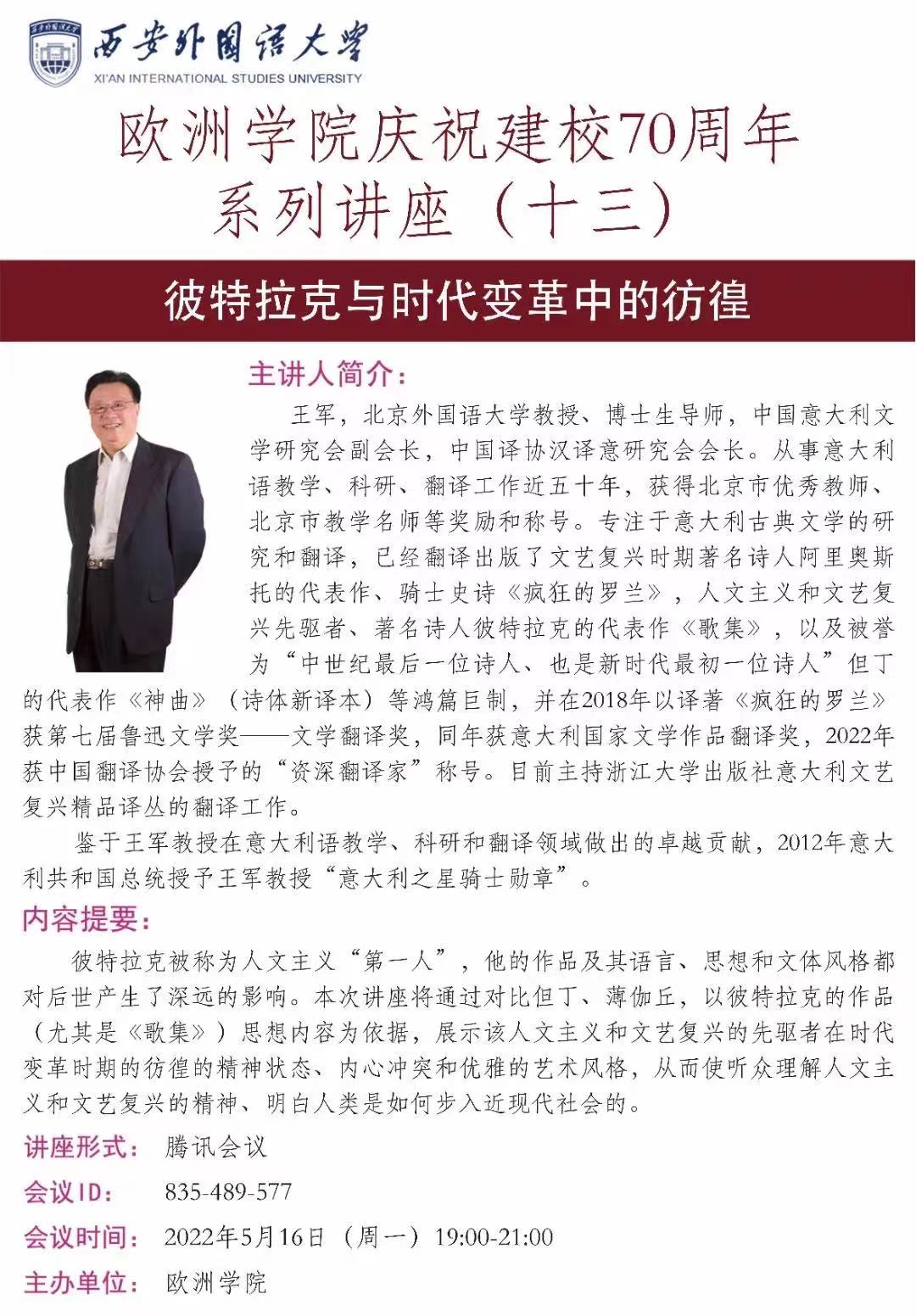 澳门娱乐 庆祝建校70周年系列讲座(十三)——彼特拉克与时代变革中的彷徨