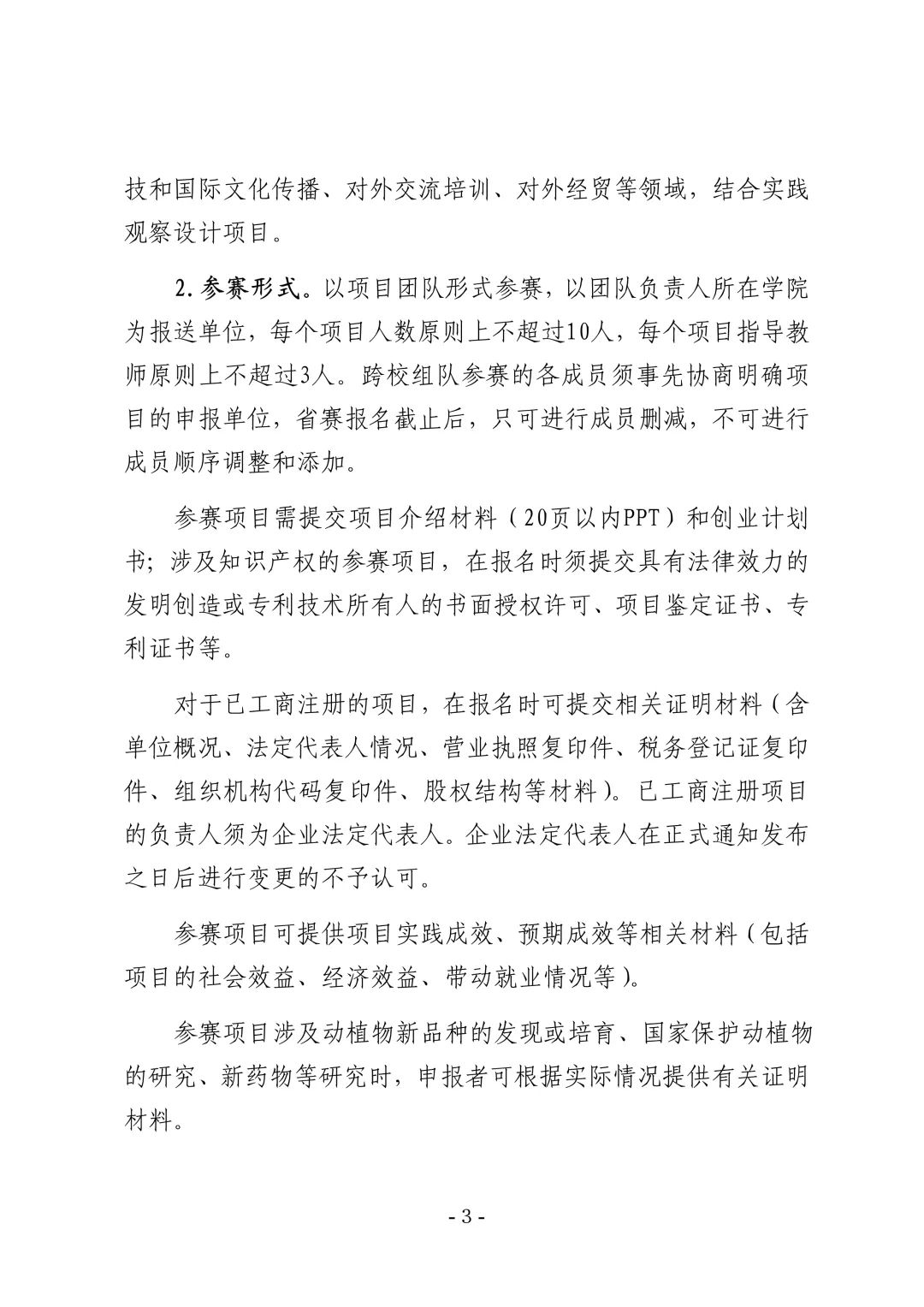 参赛项目需提交项目介绍材料(20页以内PPT)和创业计划书;涉及知识产权的参赛项目,在报名时须提交具有法律效力的发明创造或专利技术所有人的书面授权许可、项目鉴定证书、专利证书等。