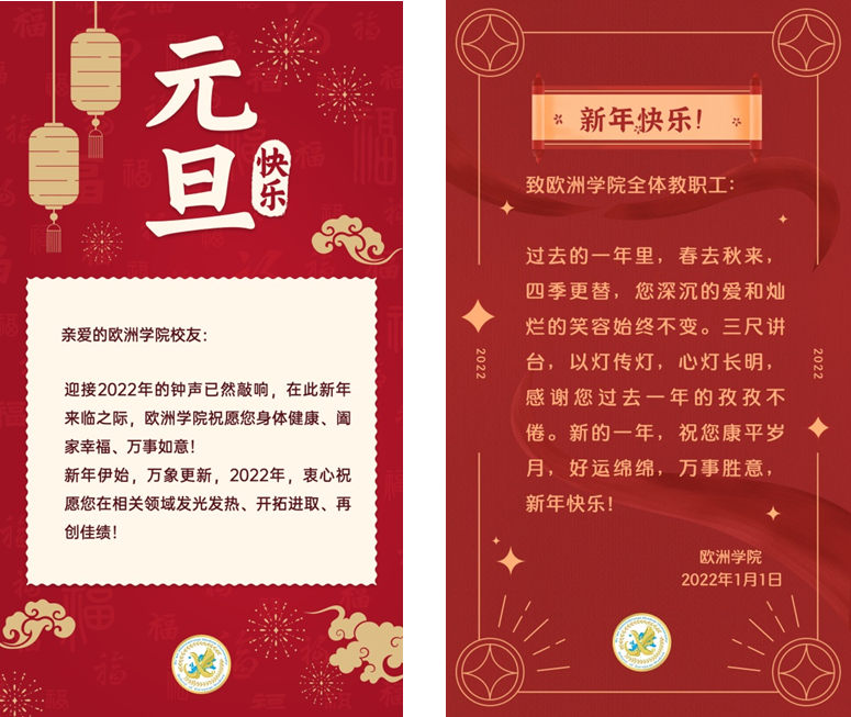 校友制作了精美节日贺卡,在新年第一天为奋战于校园抗疫一线职工、坚守在教学岗位的教师和分布于世界各地的校友送去了最温暖诚挚的新年期许。贺卡虽小,情谊深重,短短话语传递了学院对全体教职工和校友的惦记与关心,感谢他们一年来的辛苦付出,送去母校的新年问候,为他们带来了家的温暖,激励全体教职工以更好的精神状态迎接奋进新征程,推动学院迈向更好发展的新一年。