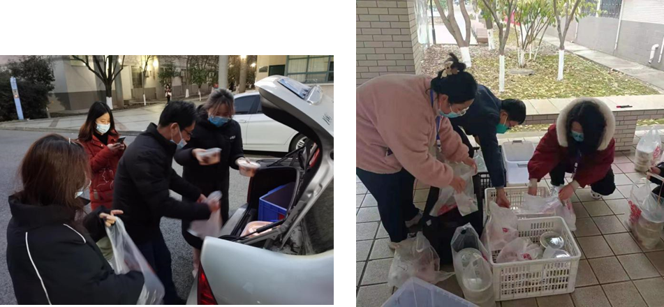处于健康检测和隔离状态的学生宿舍配送早、中、晚饭,保证学生基本餐食需求,切实落实防疫工作要求。学生志愿者队伍分为三个小组,分别设置负责学生和相应负责辅导员,分工管理不同学生宿舍公寓和楼层内的配餐服务,每日及时将热腾腾的饭菜送到同学们的手中,切实履行“不落下一张口、不浪费一份饭”。每一份饭菜背后,都是学院领导、辅导员和学生志愿者奔波于食堂和宿舍楼之间、穿梭于楼道间撒下的辛勤汗水和做出的无私奉献。学院时刻关心学生基本生活需求,不断调整工作和服务方式以提高效率,从而更好为学生提供高质量就餐体验,解决同学后顾之忧。