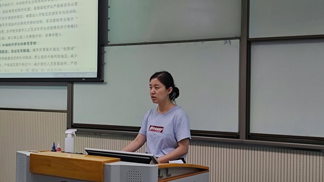 在SA102教室召开了2022年暑期留校安全稳定大会,学院党委书记刘小勇,党委副书记纪彩玲,各年级辅导员老师以及全体留宿学生线下线上参加了本次会议,会议由学工秘书杨雨聪主持。