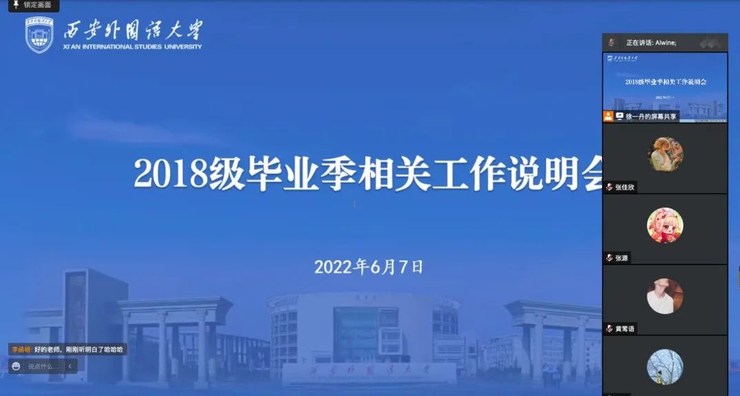2018级辅导员徐一丹组织召开了毕业班毕业情况说明会,会议采取线上方式进行,全年级学生积极参会。