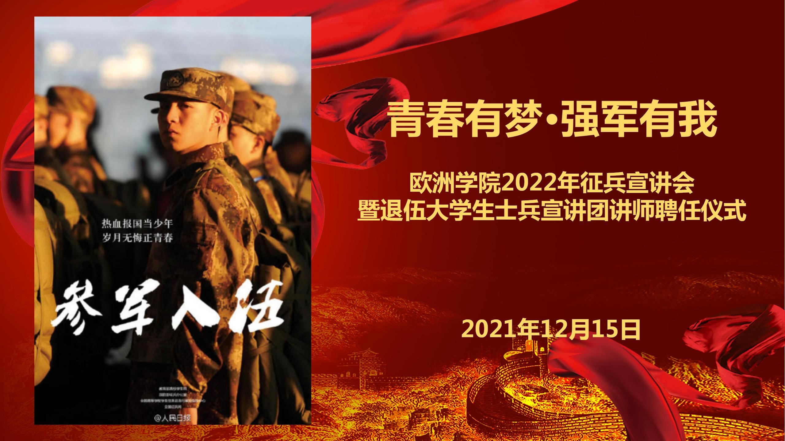 为积极响应国家号召,激发学生参军热情,做好2022年征兵工作,12月15日下午,澳门娱乐