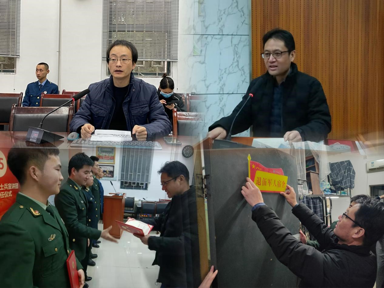 退伍大学生士兵宣讲团讲师聘书。会后,刘小勇前往宿舍,代表学院为学院全体退伍军人宿舍挂荣誉牌。