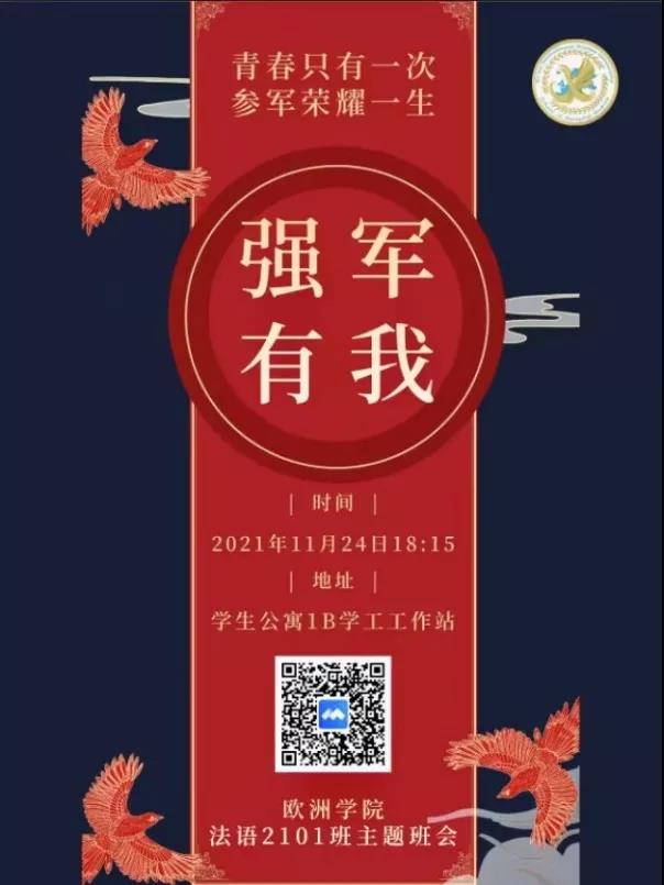 法语2101班于学生公寓1B学工工作站开展了“参军报国,无悔青春”主题班会,澳门娱乐官网