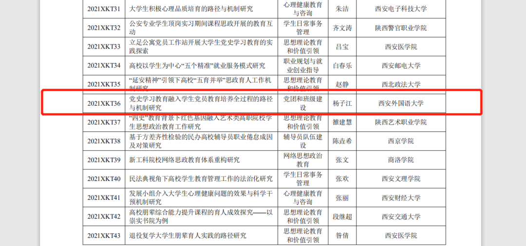 杨子江同志主持的《党史学习教育融入学生党员教育培养全过程的路径与机制研究》获批学生工作研究课题立项。