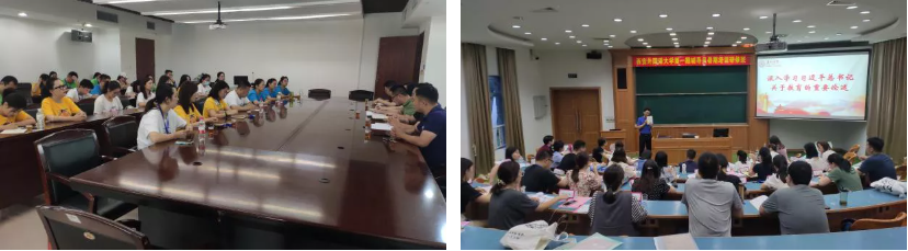 泉州师范学院副院长、原厦门大学学生处处长夏侯建兵教授主讲《教育信息化与大学生大学生全面发展》;厦门大学办公室副主任、原厦门大学党委学生工作部副部长袁国柱讲授《学习习近平总书记关于教育的重要论述》,并与我校辅导员们围绕党建工作、文化育人、实践育人等工作内容展开了热烈探讨;厦门大学高等教育数据中心主任谢作栩教授做了题为《高校第二课堂网络平台建设与精准育人的迈进》的专题报告,同时,厦门大学法学院党委组织员刘群鑫、物理科学与技术学院辅导员陈洪、经济学院辅导员王华、学生工作处符晓珠围绕“大数据背景下的辅导员工作”,就第二课堂成绩单建设情况、大学生职业规划与就业指导工作、辅导员工作室的建设与成果推广、学生党建与组织建设等方面进行了面对面交流。