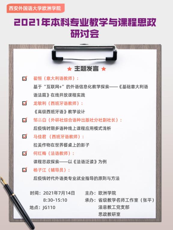本学期学院加强了对本科教学的组织领导,新成立了德语系、法语系、西班牙语系、意大利语系和思政教研室,紧紧抓住教师队伍“主力军”、课程建设“主战场”、课堂教学“主渠道”,统筹各类资源,推动课程思政建设不断取得新成效。今后,学院会进一步发挥课程思政示范引领和辐射带动作用,逐步构建全员全程全方位的育人大格局,推进学院教育教学高水平高质量发展。