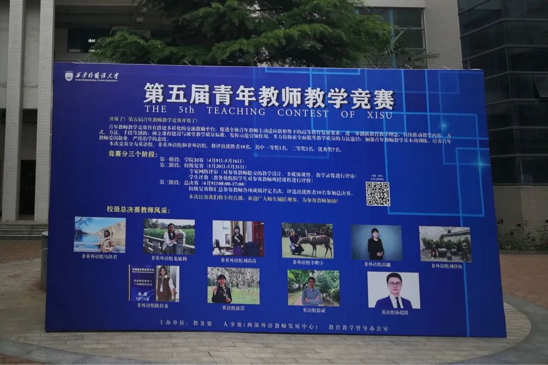 2021年6月9日,我校第五届青年教师教学竞赛总决赛在实验楼3区102室举行。教育部高等学校外国语言文学类教学指导委员会委员及日语专业教学分指导委员会主任委员天津外国语大学修刚教授、东北师范大学原副校长张绍杰教授、陕西师范大学国家级教学名师傅钢善教授、西安建筑科技大学国家级教学名师白国良教授、西北工业大学国家级教学名师葛文杰教授、教育部高等学校外国语言文学类专业教学指导委员会委员及西班牙语专业分指导委员会副主任委员上海外国语大学于漫教授、西安外国语大学杨达复教授等7位专家担任本次竞赛的评委。我校王启龙副校长(主持行政工作)、姜亚军副校长,宣传部、学工部、人事处、教务处、教育教学督导办公室及各学院负责人以及部分青年教师和学生参加了开幕式及颁奖典礼。总决赛由姜亚军副校长主持。