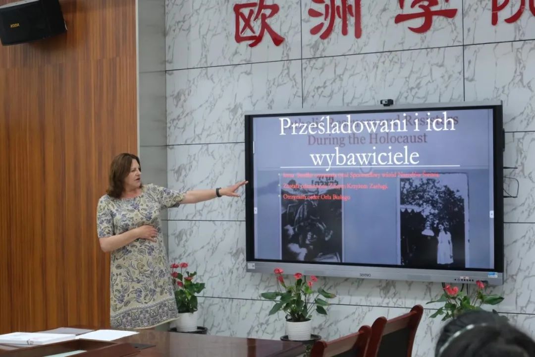 波兰驻华使馆代表团一行还参观了我校波兰研究中心,肯定了我校对波兰研究的重视和所作出的成绩。随后,大使夫人伊扎贝拉·扎庸赤科夫斯卡女士(Izabella Zajączkowska)为波兰语专业师生做了题为“二十世纪波兰杰出女性”的讲座,并与我校波兰语师生进行亲切交流,并为在去年全国波兰语翻译大赛中获奖的波兰语专业学生颁发证书及赠书。