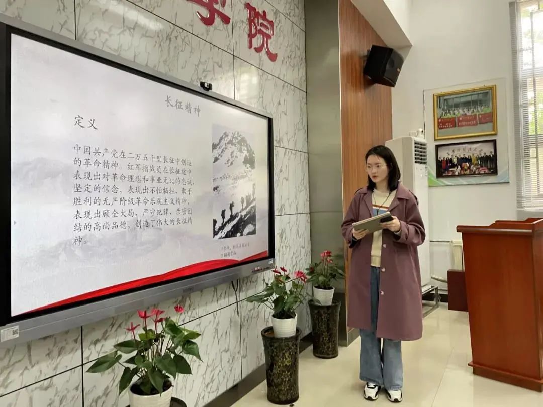 雄关漫道真如铁,而今迈步从头越。鉴往知来,深入领会和弘扬伟大长征精神,青年党员当勇挑重担,牢记使命,行稳致远。几位发言党员表示,读懂长征精神,深刻理解长征精神中坚如磐石的理想信念、百折不挠的英雄气概和敢于胜利的革命风范,才能坚定认识到中国共产党的领导是历史的必然、人民的选择。青年党员应当实事求是,坚定理论自信,理论联系实际,弘扬团结合作、勇于创新、自强不息的优秀品质。赋予长征精神以时代价值,需要将长征精神中的革命理想、革命忠诚和革命乐观主义融入教书育人的事业中,指导大学生树立正确的职业观、创业观,将谨慎踏实的态度落实到学习和生活中,立志成才。