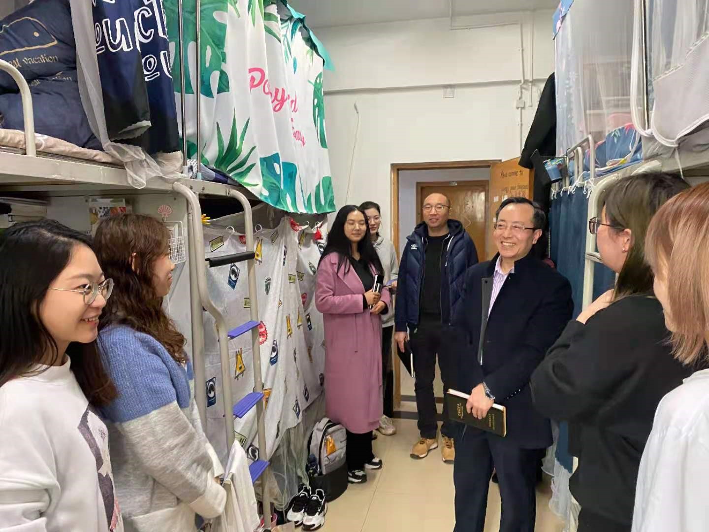 部分学生宿舍,与同学们进行了亲切交流,了解了学生生活状况和思想动态。