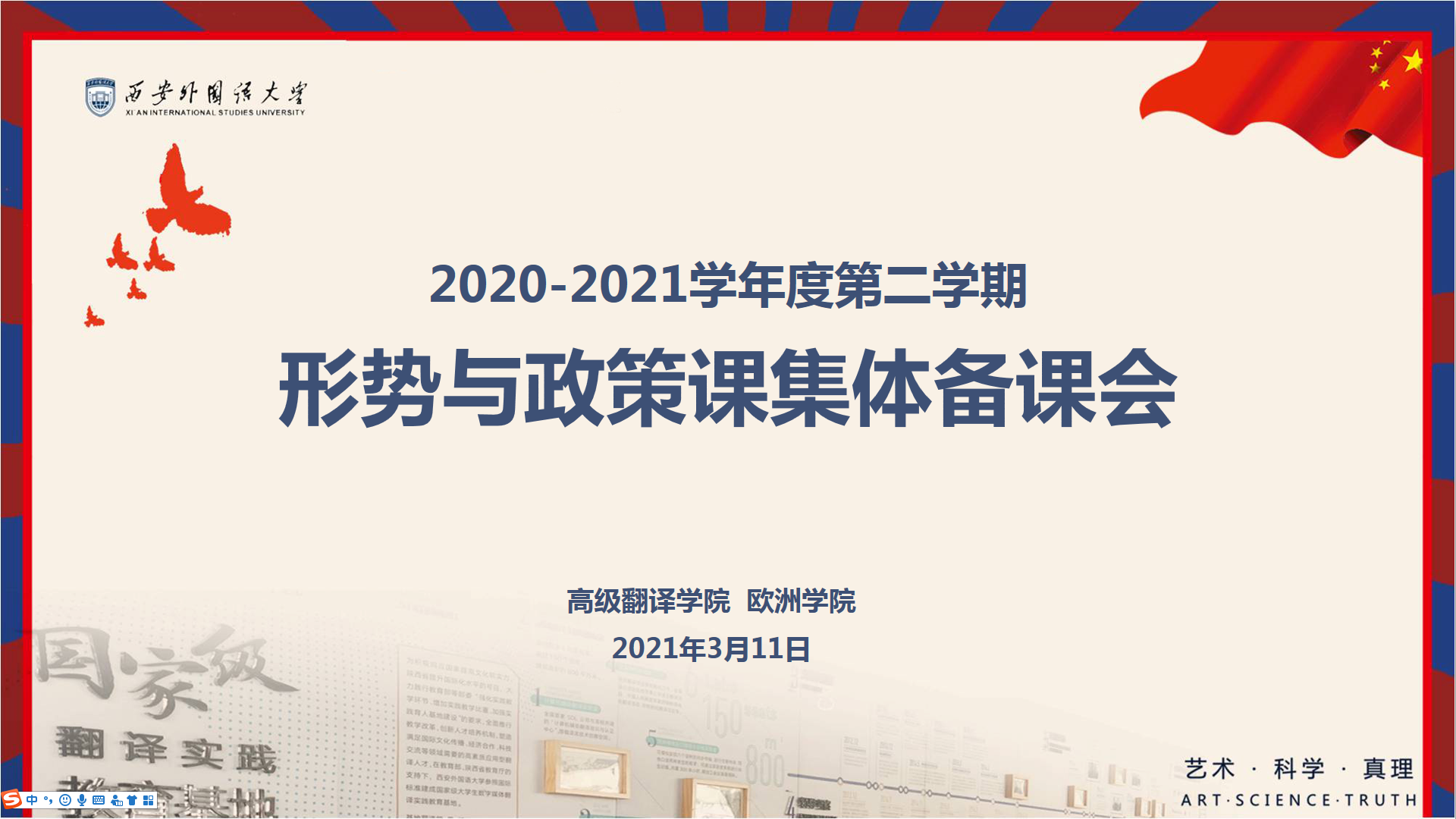 与高级翻译学院联合召开2020-2021学年第二学期《形势与政策》课集体备课会。马克思主义学院院长张亲霞、副院长李永虎、澳门娱乐官网