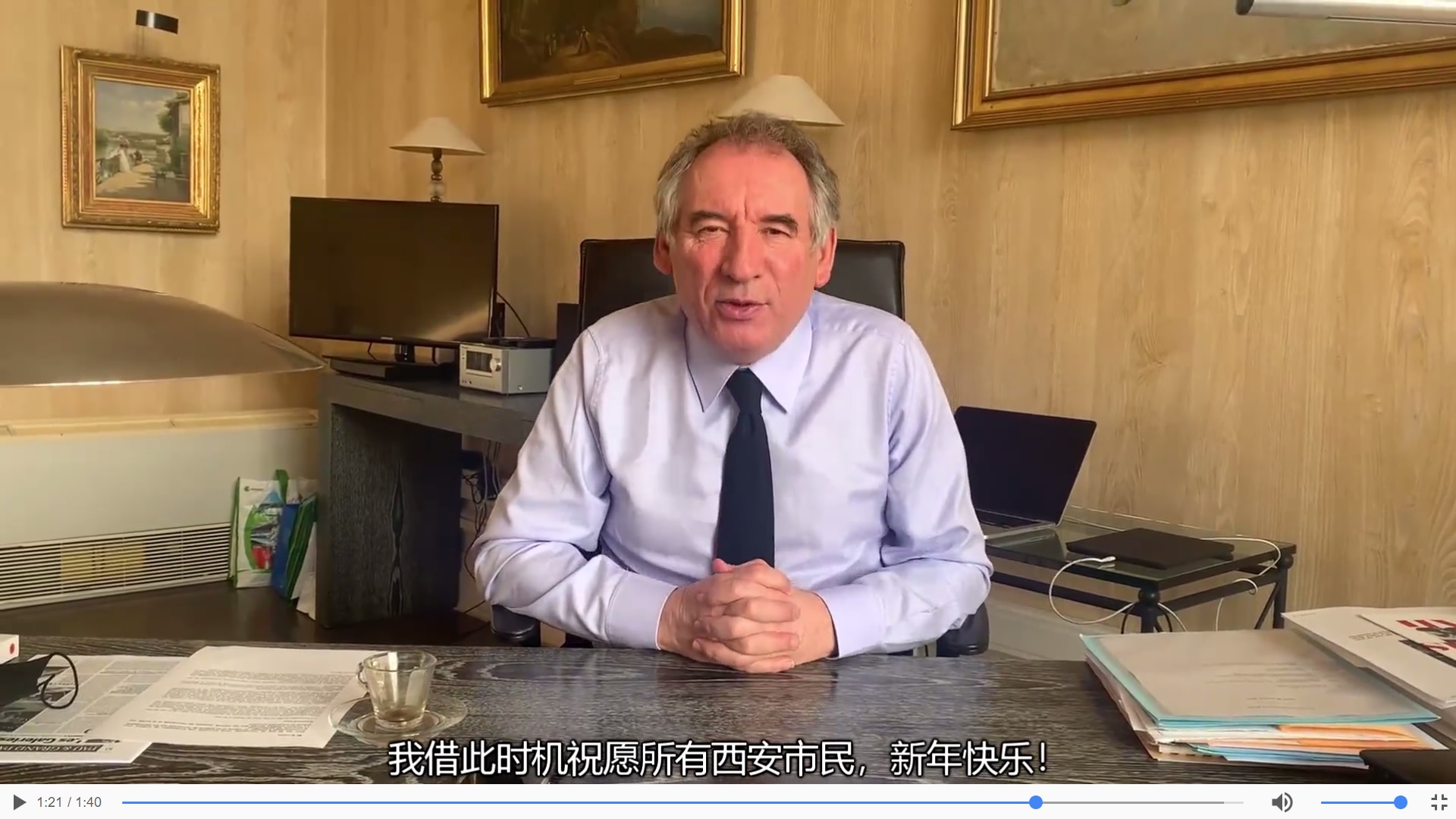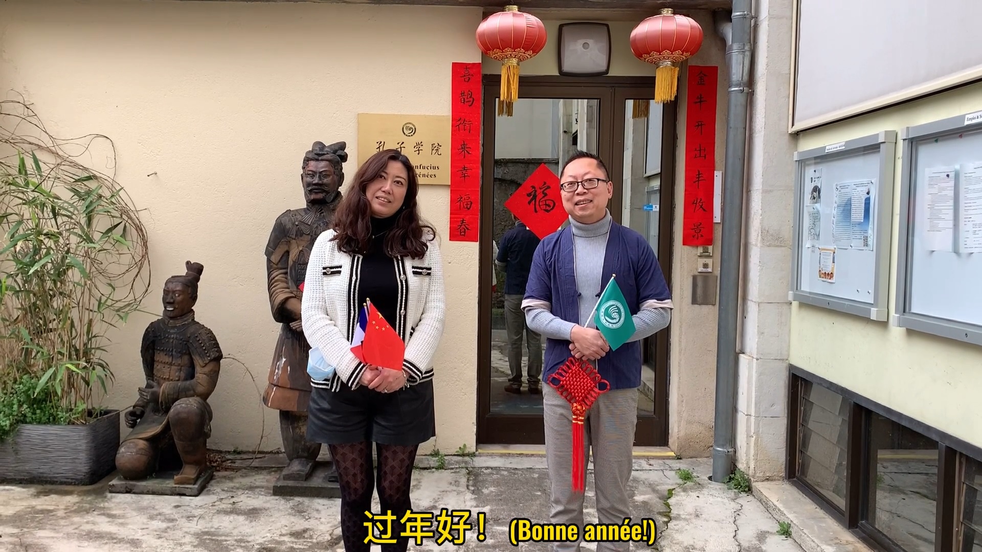 法国国家规划高级专员、波城市长弗朗索瓦·贝鲁为孔院及中国人民送上了新年祝福,并为兵马俑图片展揭幕。波城孔子学院院长和学员也通过录制视频的方式为祖国和同胞送上了美好的祝愿。部分视频在法国波城市政府公共媒体平台、当地媒体及人民网、2021丝路嘉年华、西安外事网等媒体进行宣传和播放。