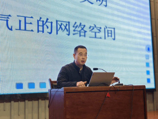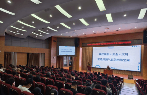 于JA111报告厅开展党组织书记讲思政课活动暨安全教育专题培训,党委书记郭富庭以《践行法治·安全·文明,营造风清气正的网络空间》为题主讲授课,2024级本科生、2024级研究生以及研究生党员代表参加活动。