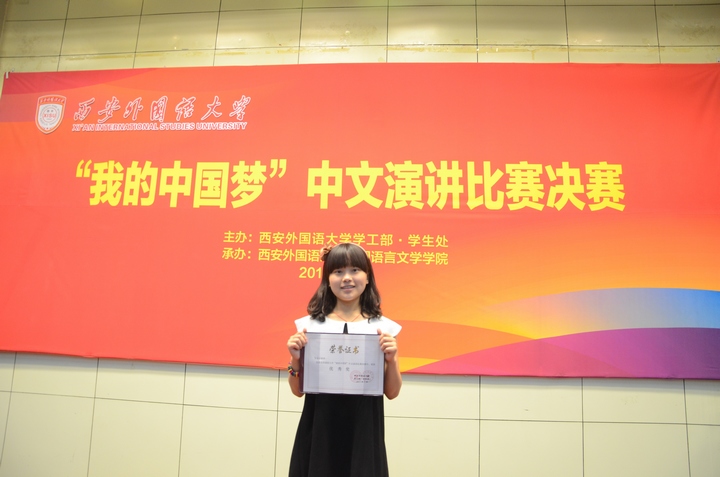 2013年5月31日下午,由我校学工部•学生处主办,中国语言文学学院承办的“我的中国梦”中文演讲比赛在行政楼报告厅举行。共有来自学校各个学院的17名代表参赛,澳门娱乐 2011级彭逸枝同学代表学院参加了本次比赛。 在比赛中,彭逸枝同学最后出场,她深情款款的演讲了一篇《千年寻梦源》,诉说了自己对美丽中国的期待与向往,并以第七名的成绩获得优秀奖。