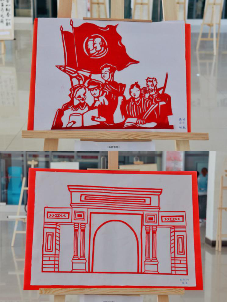 张燕《五四青年》、《西外老校区校门》(剪纸作品)