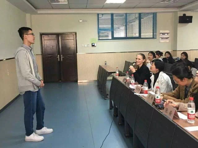 2017年4月7日下午,西安外国语大学德语学院于SA202成功举办德语演讲比赛初赛。德语演讲比赛作为德语学院德意志文化节中最考验德语能力的部分,一向是德院大一学子展现德语口语水平和日常交际能力的重要平台。本次演讲比赛上,德语学院副院长张世胜老师与大一教研组各位老师作为评委出席。下午两点整,主持人一声“Guten Tag!”拉开了比赛帷幕。