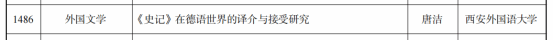 唐洁副教授申报的年度项目“《史记》在德语世界的译介与接受研究”成功入选2025年国家社科基金青年项目立项名单。