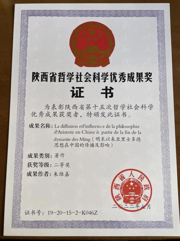 陕西省第十五次哲学社会科学优秀成果二等奖